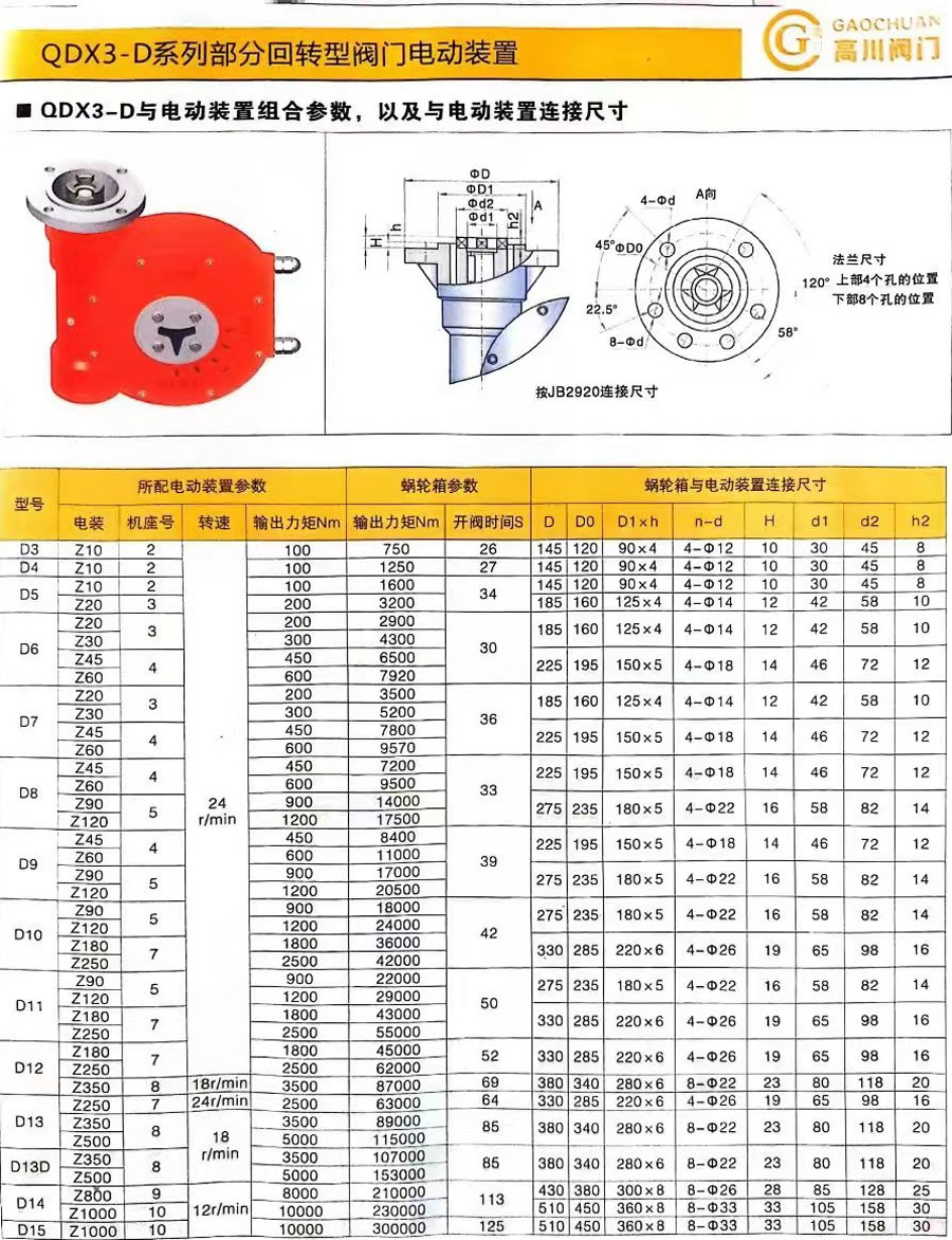 QDX3-D9電動(dòng)蝸輪頭(箱)是一種90°回轉(zhuǎn)型驅(qū)動(dòng)裝置,適用于球閥、蝶閥、旋塞閥等類(lèi)閥門(mén)。特殊型可輸出360°轉(zhuǎn)角。產(chǎn)品共有13個(gè)型號(hào)。該產(chǎn)品是與多回轉(zhuǎn)電動(dòng)裝置組合輸出大力矩部分回轉(zhuǎn)型閥門(mén)電動(dòng)裝置。